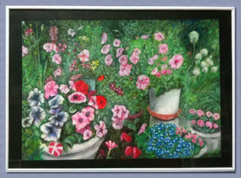 花の配置のバランスもあまりよくないように感じます。が、描きなおす根性がでてきません。