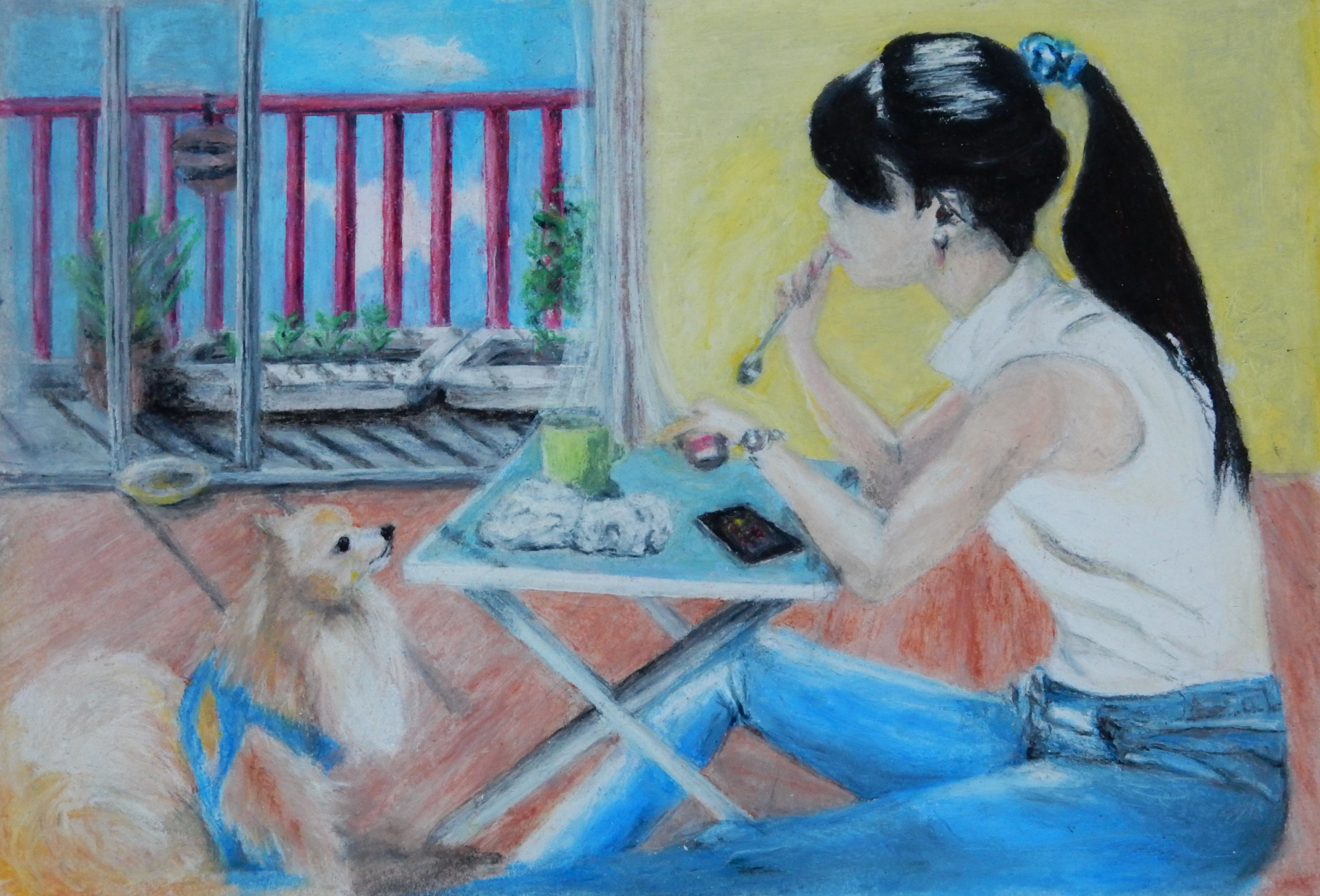 空の雲の色や切れ目からの空が難しい。実際はもっと黒っぽいかんじでしょうか。